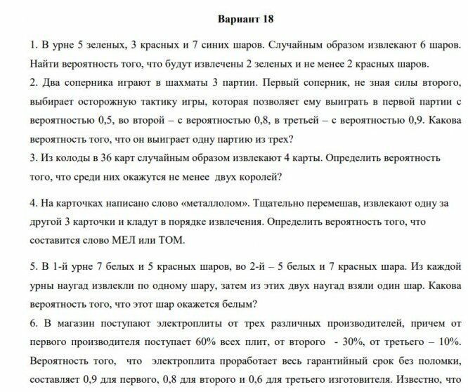 Вариант 18 - ДЗ №1 - Теория вероятностей - 13 Задач