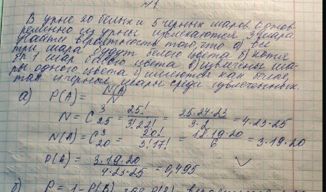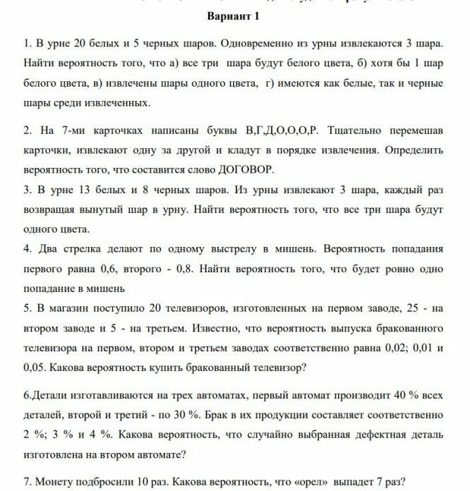 Вариант 1 - ДЗ №1 - Теория вероятностей - Часть 1 «случайные события» - 7 Задач