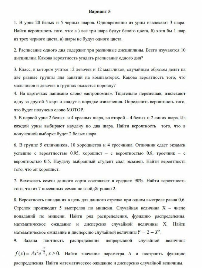 Вариант 5 - ДЗ №1 - Теория вероятностей (Случайные события) - 9 Задач