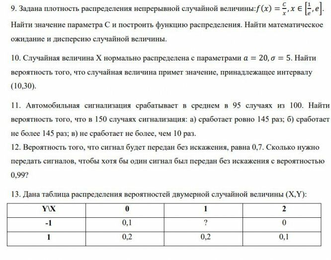 Вариант 14 - ДЗ №2 - Теория вероятностей - Часть 2 «случайные величины» - Задача 9 =>13
