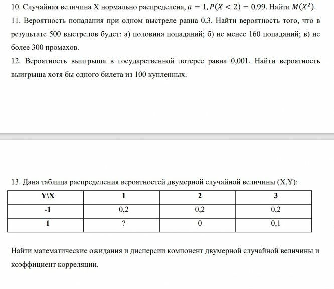 Вариант 20 - ДЗ №1 - Теория вероятностей - Задач 10 =>13 - Часть 2 «случайные величины»