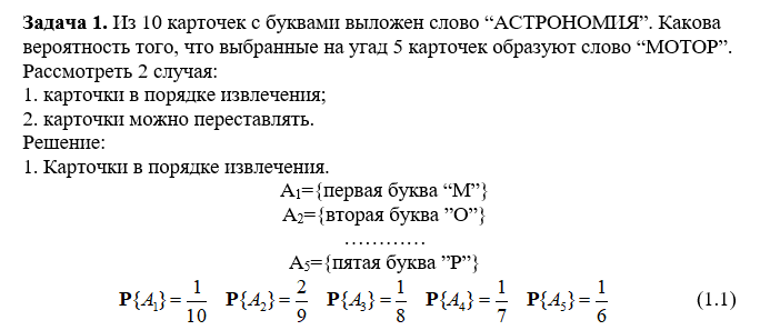 Из 10 карточек с буквами выложен слово “АСТРОНОМИЯ”. Какова вероятность того, что выбранные на угад 5 карточек образуют слово “МОТОР”.