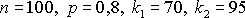 Вероятность наступления некоторого события в каждом из n независимых испытаний равна р. Определить вероятность того, что число m наступлений события удовлетворяет следующему неравенству: k1 ≤ m ≤ k2
