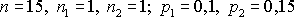 Вероятность того, что цель поражена при одном выстреле первым стрелком p1, вторым – p2. Первый сделал n1, второй – n2 выстрелов. Определить вероятность того, что цель не поражена.