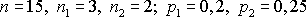 Куплено n билетов. Определить вероятность получения n1 крупных выигрышей и n2 мелких.