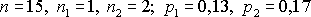 Куплено n билетов. Определить вероятность получения n1 крупных выигрышей и n2 мелких.