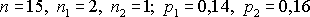 Куплено n билетов. Определить вероятность получения n1 крупных выигрышей и n2 мелких.