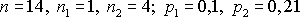 Вероятность того, что цель поражена при одном выстреле первым стрелком p1, вторым – p2. Первый сделал n1, второй – n2 выстрелов. Определить вероятность того, что цель не поражена.