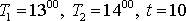 Моменты начала двух событий наудачу распределены в промежутке времени от T1 до T2. Одно из событий длится 10 мин., другое – t мин. Определить вероятность того, что: