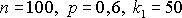 Вероятность наступления некоторого события в каждом из n независимых испытаний равна р. Определить вероятность того, что число m наступлений события удовлетворяет следующему неравенству: k1 ≤ m ≤ k2
