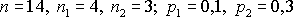 Куплено n билетов. Определить вероятность получения n1 крупных выигрышей и n2 мелких.