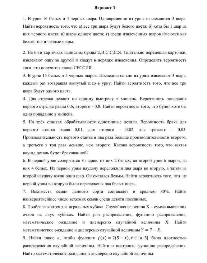 ДЗ 1: Основы Теории Вероятностей вариант 3