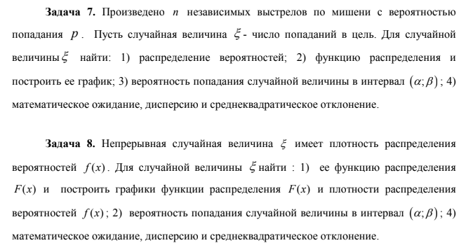 2 часть типового расчета по теории вероятности. Задания 7-10, 12(а)