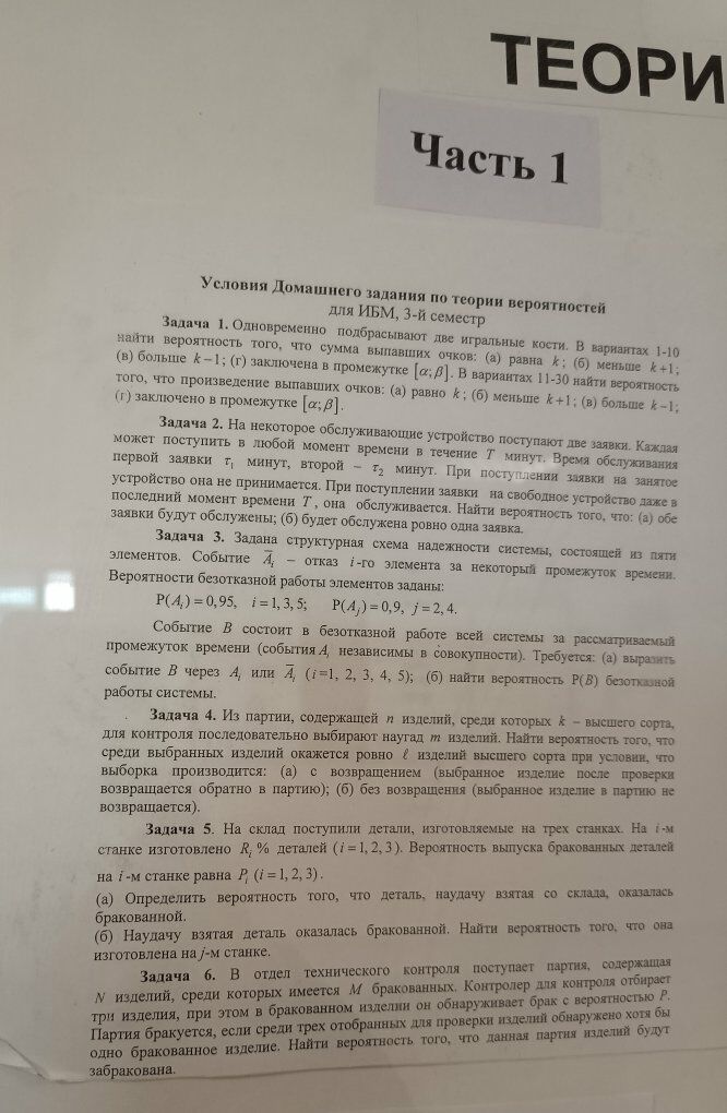 ДЗ №1 по теории вероятностей и математической статистике. Решены все 12 задач, то есть 1 и 2 часть. Проверил и принял Винокуров Д. Л.