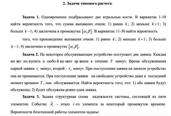 Готовый типовой расчет № 1 по теории вероятностей (часть 1), 2 курс, Бауманка, ИБМ, максимальный балл