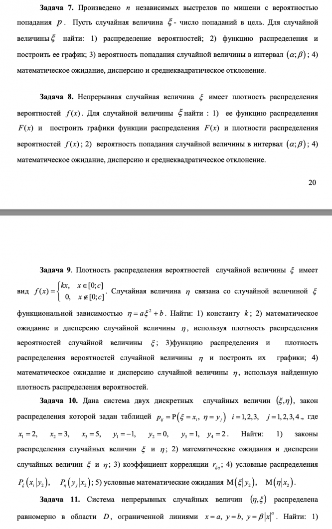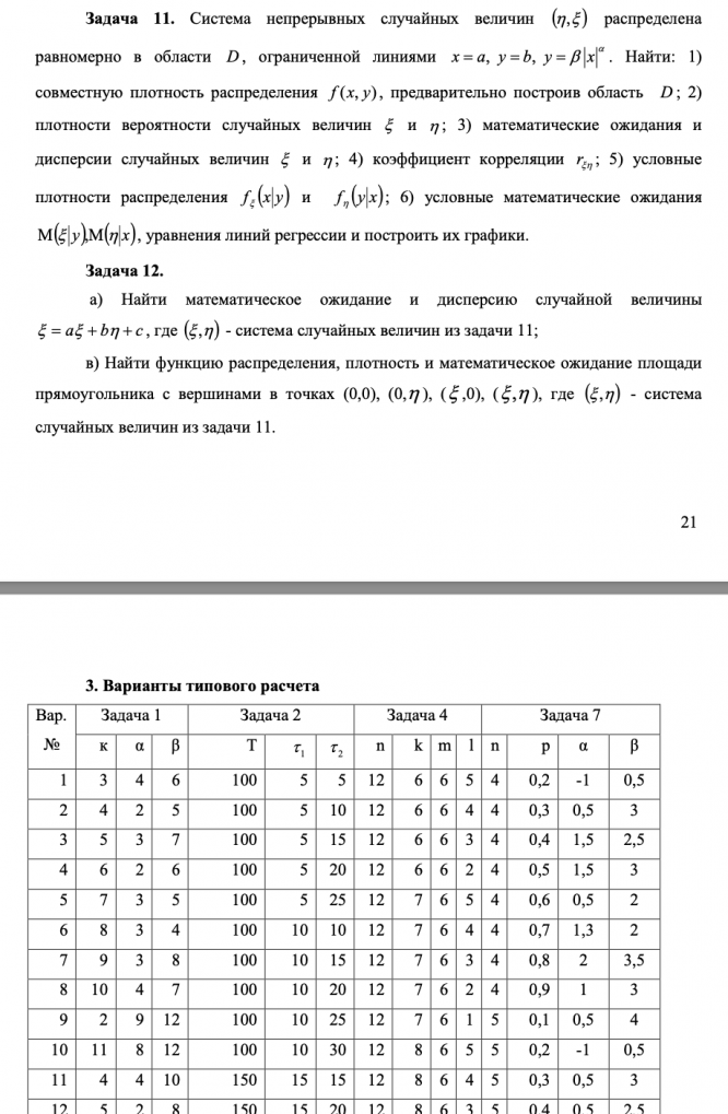 Типовой расчет № 1, часть 2, вар. 11 по теории вероятностей, 2 курс 3 семестр, МГТУ им. Н. Э. Баумана ИБМ. Решен на максимальный балл. Номера №7-10,12(а)).