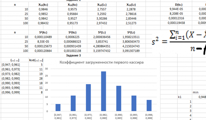 Таблица Excel для решения любого варианта 4 дз по теории вероятностей вместе с формулами