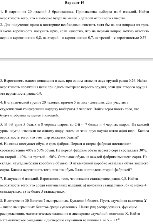 ДЗ 1: Теория вероятностей - Часть 1 8 задач Вариант 19