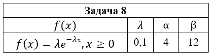 • Задача 8. Непрерывная случайная величина ξ имеет плотность распределения вероятностей f(x). Для случайной величины ξ найти : 1) ее функцию распределения F(x) ; 2) построить графики функции распределения F(x) и плотности распределения вероятностей f(x); 3) вероятность попадания случайной величины в интервал (α;β); 4) математическое ожидание, дисперсию и среднеквадратическое отклонение.