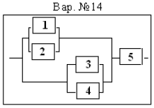 • Задача 3. Задана структурная схема надежности системы, состоящей из пяти элементов. Событие Аi - отказ i-го элемента за некоторый промежуток времени. Вероятности безотказной работы элементов заданы: P(Ai)=0,95; i=1,3,5; P(Aj)=0,95; j=2,4. Событие А состоит в безотказной работе всей системы за рассматриваемый промежуток времени (события Аi независимы в совокупности). Требуется: 1) выразить событие А через Ai или Аi (i=1,2,3,4,5); 2) найти вероятность P(A) безотказной работы системы.