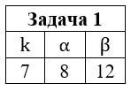 • Задача 1. Одновременно подбрасывают две игральные кости. В вариантах 1-10 найти вероятность того, что сумма выпавших очков: 1) равна k; 2) меньше k+1; 3) больше k-1; 4) заключена в промежутке [α;β]. В вариантах 11-30 найти вероятность того, что произведение выпавших очков: 1) равна k; 2) меньше k+1; 3) больше k-1; 4) заключена в промежутке [α;β].