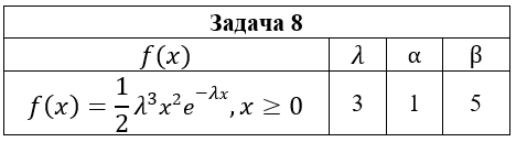 • Задача 8. Непрерывная случайная величина ξ имеет плотность распределения вероятностей f(x). Для случайной величины ξ найти : 1) ее функцию распределения F(x) ; 2) построить графики функции распределения F(x) и плотности распределения вероятностей f(x); 3) вероятность попадания случайной величины в интервал (α;β); 4) математическое ожидание, дисперсию и среднеквадратическое отклонение.
