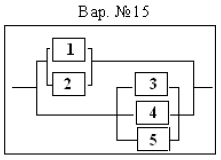 • Задача 3. Задана структурная схема надежности системы, состоящей из пяти элементов. Событие Аi - отказ i-го элемента за некоторый промежуток времени. Вероятности безотказной работы элементов заданы: P(Ai)=0,95; i=1,3,5; P(Aj)=0,95; j=2,4. Событие А состоит в безотказной работе всей системы за рассматриваемый промежуток времени (события Аi независимы в совокупности). Требуется: 1) выразить событие А через Ai или Аi (i=1,2,3,4,5); 2) найти вероятность P(A) безотказной работы системы.