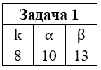 • Задача 1. Одновременно подбрасывают две игральные кости. В вариантах 1-10 найти вероятность того, что сумма выпавших очков: 1) равна k; 2) меньше k+1; 3) больше k-1; 4) заключена в промежутке [α;β]. В вариантах 11-30 найти вероятность того, что произведение выпавших очков: 1) равна k; 2) меньше k+1; 3) больше k-1; 4) заключена в промежутке [α;β].