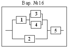 • Задача 3. Задана структурная схема надежности системы, состоящей из пяти элементов. Событие Аi - отказ i-го элемента за некоторый промежуток времени. Вероятности безотказной работы элементов заданы: P(Ai)=0,95; i=1,3,5; P(Aj)=0,95; j=2,4. Событие А состоит в безотказной работе всей системы за рассматриваемый промежуток времени (события Аi независимы в совокупности). Требуется: 1) выразить событие А через Ai или Аi (i=1,2,3,4,5); 2) найти вероятность P(A) безотказной работы системы.
