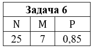 • Задача 6. В отдел технического контроля поступает партия, содержащая N изделий, среди которых имеется M бракованных. Контролер для контроля отбирает 3 изделия, при этом в бракованном изделии он обнаруживает брак с вероятностью P. Партия бракуется, если среди трех отобранных для проверки изделий обнаружено хотя бы одно бракованное изделие. Найти вероятность того, что данная партия изделий будут забракована.