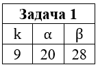 • Задача 1. Одновременно подбрасывают две игральные кости. В вариантах 1-10 найти вероятность того, что сумма выпавших очков: 1) равна k; 2) меньше k+1; 3) больше k-1; 4) заключена в промежутке [α;β]. В вариантах 11-30 найти вероятность того, что произведение выпавших очков: 1) равна k; 2) меньше k+1; 3) больше k-1; 4) заключена в промежутке [α;β].