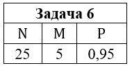 • Задача 6. В отдел технического контроля поступает партия, содержащая N изделий, среди которых имеется M бракованных. Контролер для контроля отбирает 3 изделия, при этом в бракованном изделии он обнаруживает брак с вероятностью P. Партия бракуется, если среди трех отобранных для проверки изделий обнаружено хотя бы одно бракованное изделие. Найти вероятность того, что данная партия изделий будут забракована.