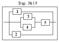 • Задача 3. Задана структурная схема надежности системы, состоящей из пяти элементов. Событие Аi - отказ i-го элемента за некоторый промежуток времени. Вероятности безотказной работы элементов заданы: P(Ai)=0,95; i=1,3,5; P(Aj)=0,95; j=2,4. Событие А состоит в безотказной работе всей системы за рассматриваемый промежуток времени (события Аi независимы в совокупности). Требуется: 1) выразить событие А через Ai или Аi (i=1,2,3,4,5); 2) найти вероятность P(A) безотказной работы системы.