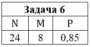 • Задача 6. В отдел технического контроля поступает партия, содержащая N изделий, среди которых имеется M бракованных. Контролер для контроля отбирает 3 изделия, при этом в бракованном изделии он обнаруживает брак с вероятностью P. Партия бракуется, если среди трех отобранных для проверки изделий обнаружено хотя бы одно бракованное изделие. Найти вероятность того, что данная партия изделий будут забракована.