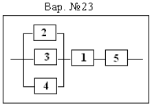 • Задача 3. Задана структурная схема надежности системы, состоящей из пяти элементов. Событие Аi - отказ i-го элемента за некоторый промежуток времени. Вероятности безотказной работы элементов заданы: P(Ai)=0,95; i=1,3,5; P(Aj)=0,95; j=2,4. Событие А состоит в безотказной работе всей системы за рассматриваемый промежуток времени (события Аi независимы в совокупности). Требуется: 1) выразить событие А через Ai или Аi (i=1,2,3,4,5); 2) найти вероятность P(A) безотказной работы системы.