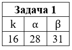 • Задача 1. Одновременно подбрасывают две игральные кости. В вариантах 1-10 найти вероятность того, что сумма выпавших очков: 1) равна k; 2) меньше k+1; 3) больше k-1; 4) заключена в промежутке [α;β]. В вариантах 11-30 найти вероятность того, что произведение выпавших очков: 1) равна k; 2) меньше k+1; 3) больше k-1; 4) заключена в промежутке [α;β].