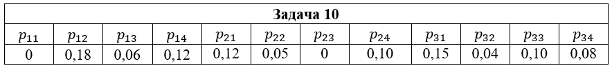 • Задача 10. Дана система двух дискретных случайных величин (ξ,η), закон распределения которой задан таблицей pij = P (ξ=xi, η=yj); i=1,2,3; j=1,2,3,4, где x1=2; x2=3; x3=5; y1=-1; y2=0; y3=1; y4=2. Найти: 1) законы распределения случайных величин ξ и η; 2) математические ожидания и дисперсии случайных величин ξ и η; 3) коэффициент корреляции rξη; 4) условные распределения Pξ(xi|y2); Pη(yi|x2); 5) условные математические ожидания M(ξ|y2); M(η|x2).