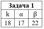 • Задача 1. Одновременно подбрасывают две игральные кости. В вариантах 1-10 найти вероятность того, что сумма выпавших очков: 1) равна k; 2) меньше k+1; 3) больше k-1; 4) заключена в промежутке [α;β]. В вариантах 11-30 найти вероятность того, что произведение выпавших очков: 1) равна k; 2) меньше k+1; 3) больше k-1; 4) заключена в промежутке [α;β].