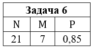 • Задача 6. В отдел технического контроля поступает партия, содержащая N изделий, среди которых имеется M бракованных. Контролер для контроля отбирает 3 изделия, при этом в бракованном изделии он обнаруживает брак с вероятностью P. Партия бракуется, если среди трех отобранных для проверки изделий обнаружено хотя бы одно бракованное изделие. Найти вероятность того, что данная партия изделий будут забракована.