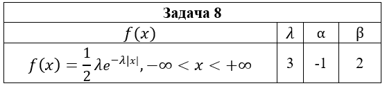 • Задача 8. Непрерывная случайная величина ξ имеет плотность распределения вероятностей f(x). Для случайной величины ξ найти : 1) ее функцию распределения F(x) ; 2) построить графики функции распределения F(x) и плотности распределения вероятностей f(x); 3) вероятность попадания случайной величины в интервал (α;β); 4) математическое ожидание, дисперсию и среднеквадратическое отклонение.