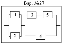 • Задача 3. Задана структурная схема надежности системы, состоящей из пяти элементов. Событие Аi - отказ i-го элемента за некоторый промежуток времени. Вероятности безотказной работы элементов заданы: P(Ai)=0,95; i=1,3,5; P(Aj)=0,95; j=2,4. Событие А состоит в безотказной работе всей системы за рассматриваемый промежуток времени (события Аi независимы в совокупности). Требуется: 1) выразить событие А через Ai или Аi (i=1,2,3,4,5); 2) найти вероятность P(A) безотказной работы системы.