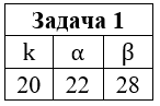 • Задача 1. Одновременно подбрасывают две игральные кости. В вариантах 1-10 найти вероятность того, что сумма выпавших очков: 1) равна k; 2) меньше k+1; 3) больше k-1; 4) заключена в промежутке [α;β]. В вариантах 11-30 найти вероятность того, что произведение выпавших очков: 1) равна k; 2) меньше k+1; 3) больше k-1; 4) заключена в промежутке [α;β].