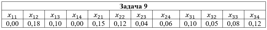 • Задача 9. Дана система двух случайных величин (ξ,η), закон распределения которой задан таблицей, где x1=2; x2=3; x3=5; y1=-1; y2=0; y3=1; y4=2. Найти: 1) законы распределения случайных величин ξ и η; 2) математические ожидания и дисперсии случайных величин ξ и η; 3) коэффициент корреляции rξη; 4) условные распределения Pξ(xi|y2); Pη(yi|x2); 5) условные математические ожидания M(ξ|y2); M(η|x2).