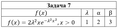 • Задача 7. Непрерывная случайная величина ξ имеет плотность вероятности f(x). Требуется : 1) найти ее функцию распределения F(x) ; 2) построить графики функции распределения F(x) и плотности вероятности f(x); 3) вычислить вероятность попадания случайной величины в интервал (α;β); 4) найти математическое ожидание, дисперсию и среднеквадратическое отклонение случайной величины ξ .
