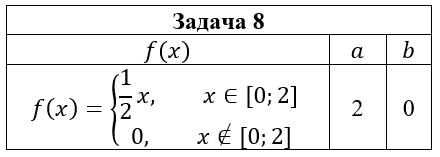 • Задача 8. Дана плотность вероятности f(x) случайной величины ξ. Случайная величина η связана со случайной величиной ξ функциональной зависимостью η=aξ2+b. Найти: 1) математическое ожидание и дисперсию случайной величины η, используя плотность вероятности случайной величины ξ; 2) плотность вероятности случайной величины η и построить ее графики; 3) математическое ожидание и дисперсию случайной величины η, используя найденную плотность вероятности случайной величины η.