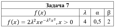 • Задача 7. Непрерывная случайная величина ξ имеет плотность вероятности f(x). Требуется : 1) найти ее функцию распределения F(x) ; 2) построить графики функции распределения F(x) и плотности вероятности f(x); 3) вычислить вероятность попадания случайной величины в интервал (α;β); 4) найти математическое ожидание, дисперсию и среднеквадратическое отклонение случайной величины ξ .