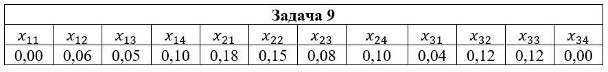 • Задача 9. Дана система двух случайных величин (ξ,η), закон распределения которой задан таблицей, где x1=2; x2=3; x3=5; y1=-1; y2=0; y3=1; y4=2. Найти: 1) законы распределения случайных величин ξ и η; 2) математические ожидания и дисперсии случайных величин ξ и η; 3) коэффициент корреляции rξη; 4) условные распределения Pξ(xi|y2); Pη(yi|x2); 5) условные математические ожидания M(ξ|y2); M(η|x2).