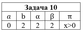 • Задача 10. Система непрерывных случайных величин (η,ξ), распределена равномерно в области D, ограниченной линиями x=a; y=b; y=β|x|α . Найти: 1) совместную плотность распределения f(x,y), предварительно построив область D; 2) плотности вероятности случайных величин ξ и η; 3) математические ожидания и дисперсии случайных величин ξ и η; 4) коэффициент корреляции rξη; 5) условные плотности распределения fξ(x|y); fη(y|x); 6) условные математические ожидания M(ξ|y); M(η|x), линии регрессии и построить их графики.