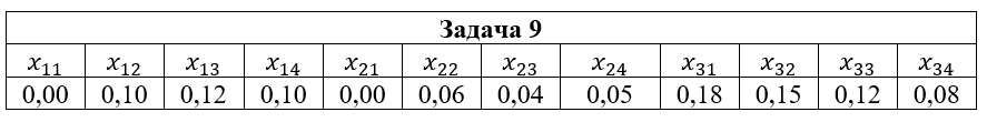 • Задача 9. Дана система двух случайных величин (ξ,η), закон распределения которой задан таблицей, где x1=2; x2=3; x3=5; y1=-1; y2=0; y3=1; y4=2. Найти: 1) законы распределения случайных величин ξ и η; 2) математические ожидания и дисперсии случайных величин ξ и η; 3) коэффициент корреляции rξη; 4) условные распределения Pξ(xi|y2); Pη(yi|x2); 5) условные математические ожидания M(ξ|y2); M(η|x2).
