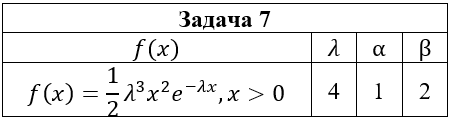 • Задача 7. Непрерывная случайная величина ξ имеет плотность вероятности f(x). Требуется : 1) найти ее функцию распределения F(x) ; 2) построить графики функции распределения F(x) и плотности вероятности f(x); 3) вычислить вероятность попадания случайной величины в интервал (α;β); 4) найти математическое ожидание, дисперсию и среднеквадратическое отклонение случайной величины ξ .